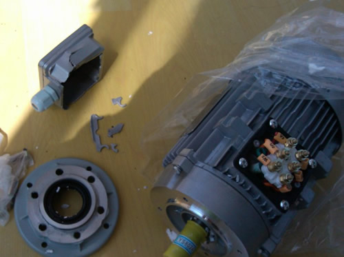快遞一台電機,到公司後,居然發現電機接線盒直接破損!