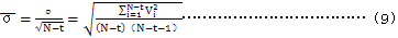 7.2.1.6按式(9)計算該列數據的标準誤差: