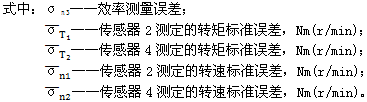 根據所採用的測試方法,将兩測試儀器配套後測定的齒輪裝置轉矩标準誤差和轉速标準誤差代入以下相應公式,計算效率的測量誤差。