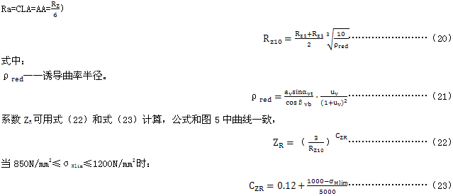 根據14.2的規定,粗糙度系數ZR是考慮齒面狀況對接觸疲勞(點蝕)強度的影響 。圖5中的粗糙度系數曲線是Rz10和配對齒輪中較軟齒輪材料σHlim的函數。該圖對節點處誘導曲率半徑 的齒輪副是有效的。