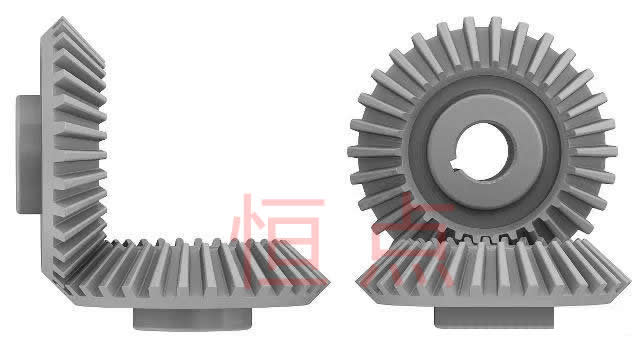 螺旋錐齒輪,它們的接觸面比直齒錐齒輪大,它們可以切割的軸向運動,可以在低於傳動軸速度下工作 。