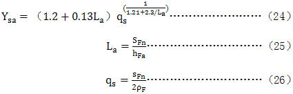 應力修正系數Ysa­是把名義彎曲應力轉換成齒根應力基本值的系數 。它考慮瞭齒根過渡曲線處的應力集中的效應,以及彎曲應力以外的其他應力對齒根應力的影響(進一步的說明見GB/T3480)。
