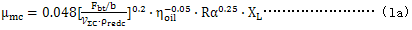 沿齧合線的平均摩擦因數μmc,可由測量[1]得到與由公式(1)估計出 。雖然 ,局部磨擦因數在節點C接近於零,當引入公式(1)時,其平均值可用節點的參數與油溫Θoil時油的黏度ηoil大緻得出。