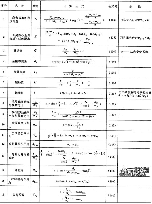 表16内齒輪齒形系數YF的有關公式