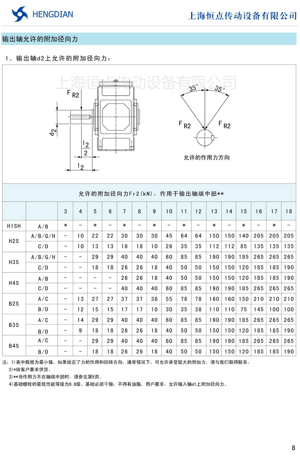 7 - 輸(shū)出軸允許的附加徑(jìng)向力 8 - H系列傳動能力表