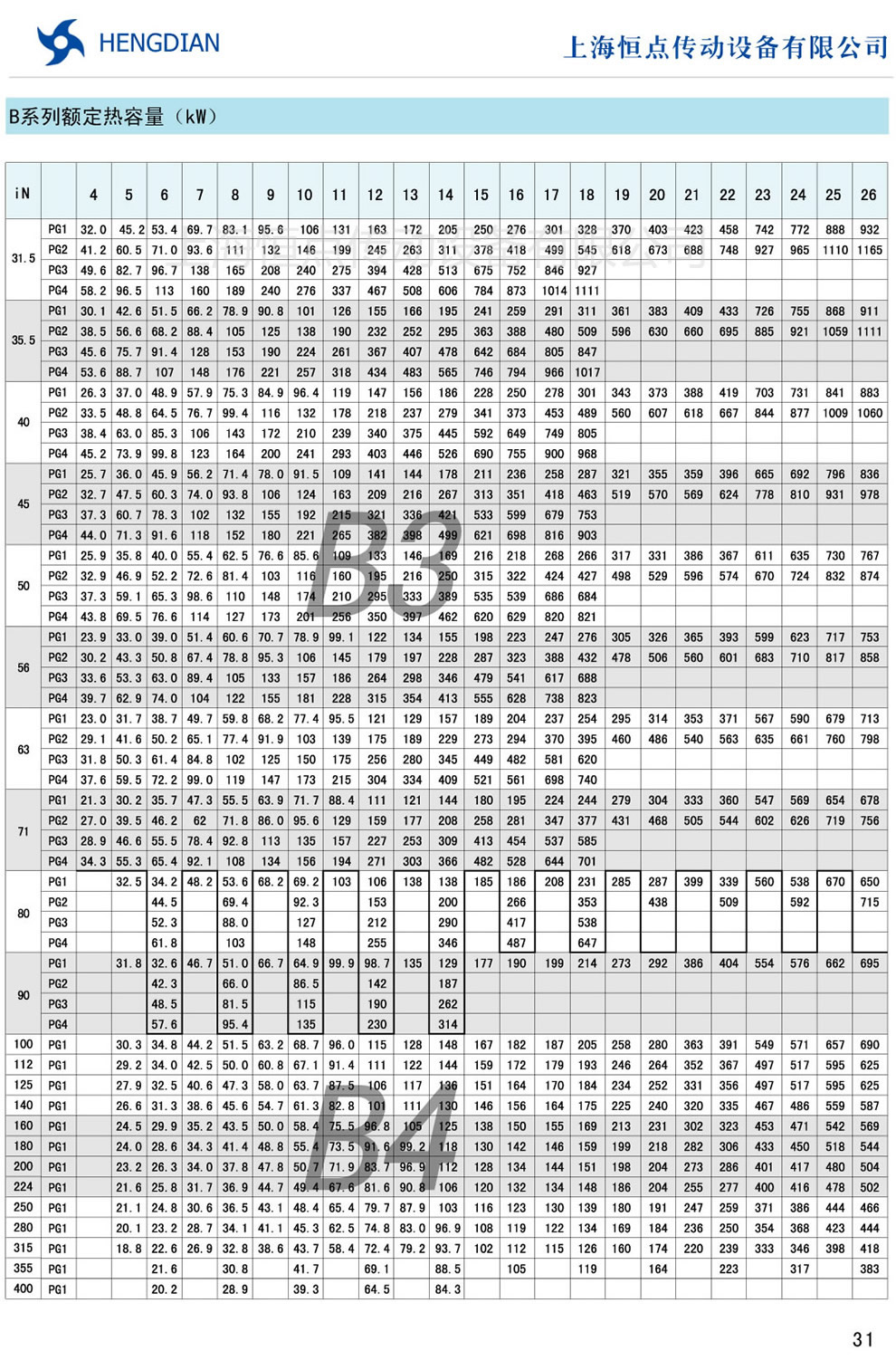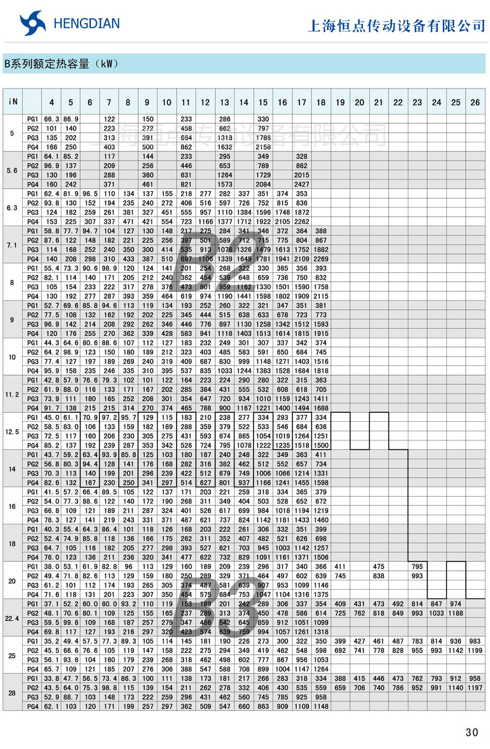 9 - B系列傳動能力表 10 - H系列額定熱容量