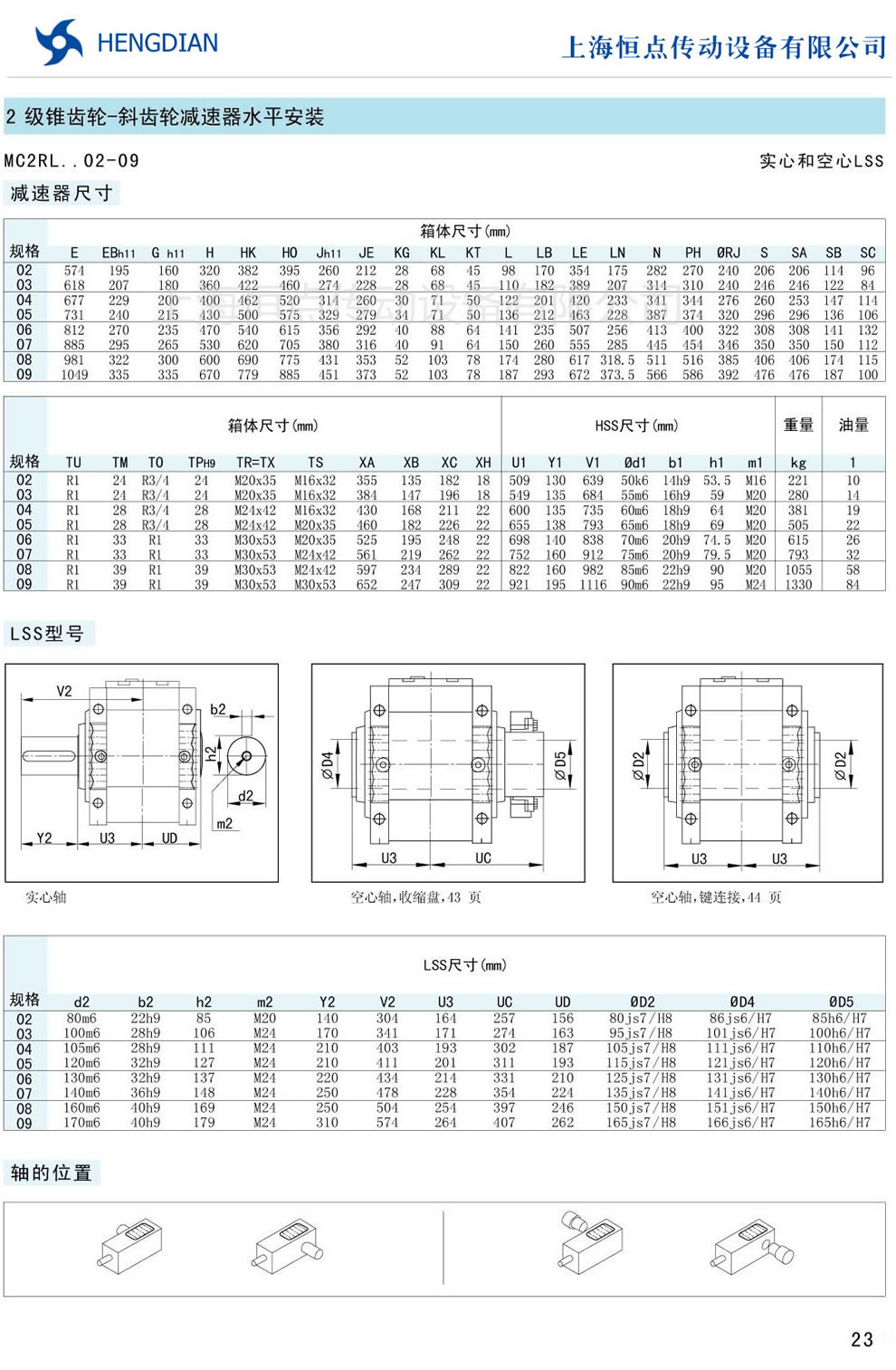 傳動能力和外型安裝尺寸/錐齒-斜齒水平安裝 - MC硬齒面減速器