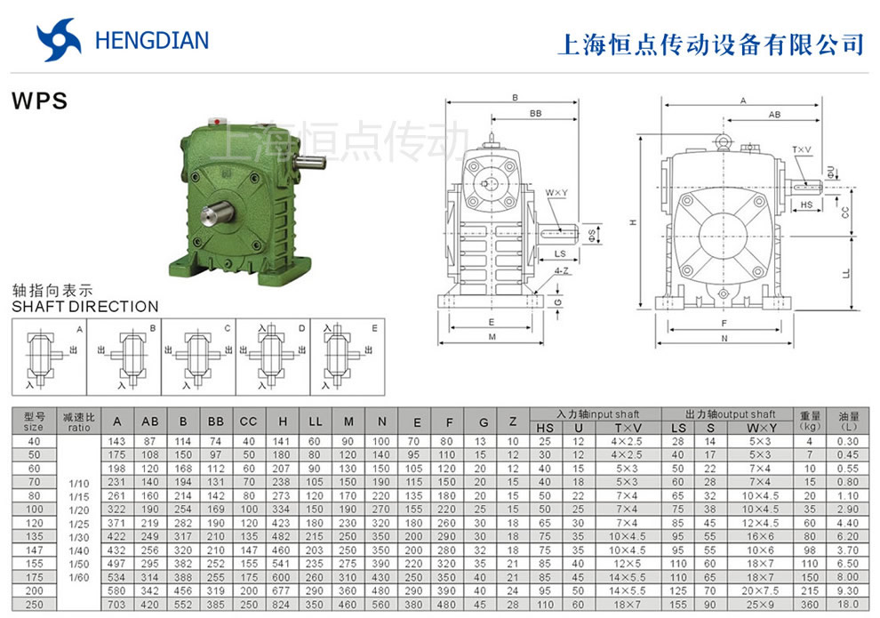 WPS減速機外形尺寸/選型指南 - WP鑄鐵蝸輪蝸杆減速機